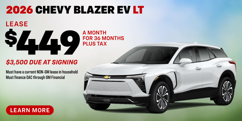 5 at this price. Stock# 931587B, 931648B, 931696B, 931482B, 931466B. $3,500 due at signing. Offer includes $5,000 Three-Way discount. Must finance on approved credit through GM Financial. Must have a current Non-GM lease in household. Mileage charge of $0.25 per mile over 10,000 miles per year. Prices exclude taxes, government fees, finance charges, dealer documentation and filing fees, and emissions testing. See dealer for complete details. Take new retail delivery by 03/31/26.