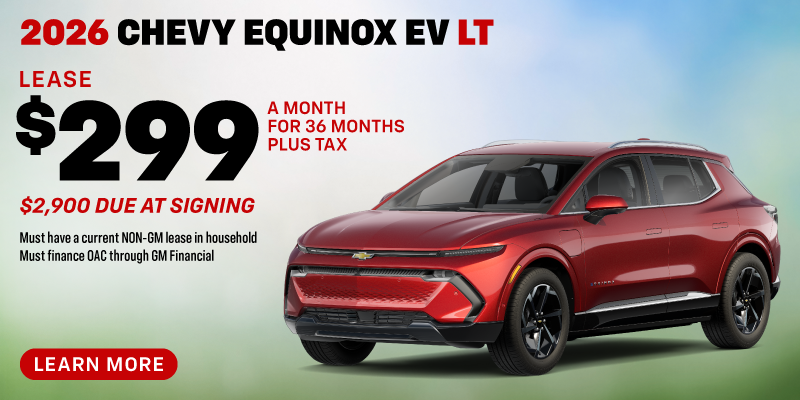 3 at this price. Stock# 660800B, 660410B, 660448B. $2,900 due at signing. Offer includes $5,000 Three-Way discount. Must finance on approved credit through GM Financial. Must have a current Non-GM lease in household. Mileage charge of $0.25 per mile over 10,000 miles per year. Prices exclude taxes, government fees, finance charges, dealer documentation and filing fees, and emissions testing. See dealer for complete details. Take new retail delivery by 03/31/26.