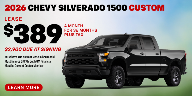 4 at this price. Stock# 901689B, 901692B, 901690B, 901691B. Based on an MSRP of $49,030. $2,900 due at signing. Offer includes $4,000 Three-Way discount. Must have any current lease in household. Must be a current Costco Member by March 2, 2026. Must finance on approved credit through GM Financial. Mileage charge of $0.25 per mile over 10,000 miles per year. Prices exclude taxes, government fees, finance charges, dealer documentation and filing fees, and emissions testing. See dealer for complete details. Take new retail delivery by 03/31/26.